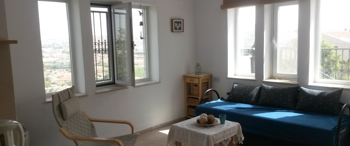 Enjoy Ofra’s refreshing air all summer, in two spacious rooms with a wide terrace overlooking the charming and guest-exclusive pool area, fresh Israeli breakfast (on weekdays), a kosher kitchenette and many (Hebrew…) books.